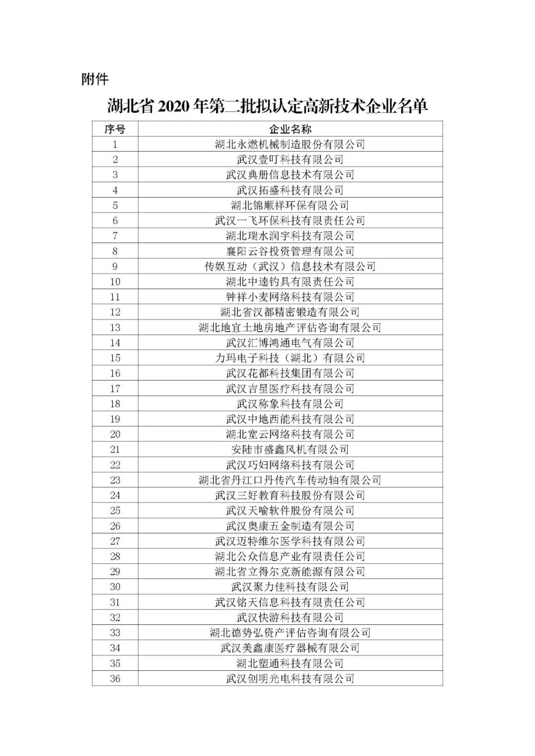 附件:湖北省2020年第二批拟认定高新技术企业名单